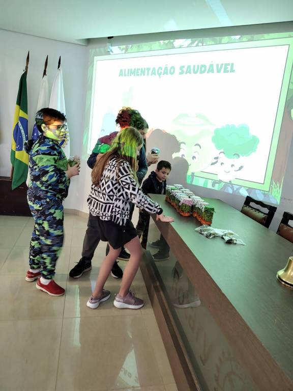 Embora o clima chuvoso tenha impedido a visita à horta, as crianças levaram mudas para casa, aprendendo sobre o cuidado com plantas. No dia da conclusão, preparamos saladas no pote, incentivando o consumo de saladas e exemplificando a reciclagem. A palestra interativa destacou a preservação ambiental e a relação entre alimentação e sustentabilidade. As crianças participaram ativamente, compartilhando suas experiências e conhecimentos.