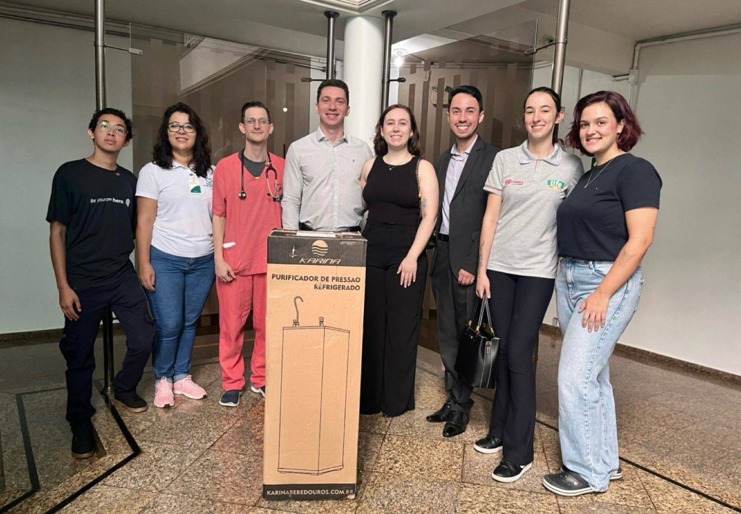 Na quinta feira, 15 de fevereiro, passamos a manhã no Hospital Bom Jesus em Toledo. Na ala pediátrica, recebemos a explicação do doutor Alan Nabarrete a respeito de infecções cruzadas, que refere-se a transferência de microrganismos patogênicos entre alimentos, utensílios, mãos ou superfícies. Por isso a necessidade de instalar um novo bebedouro no hospital, para evitar que mais pessoas se contaminassem. Acatamos a ideia e realizamos a doação de um novo bebedouro para a ala pediátrica que já está funcionando!