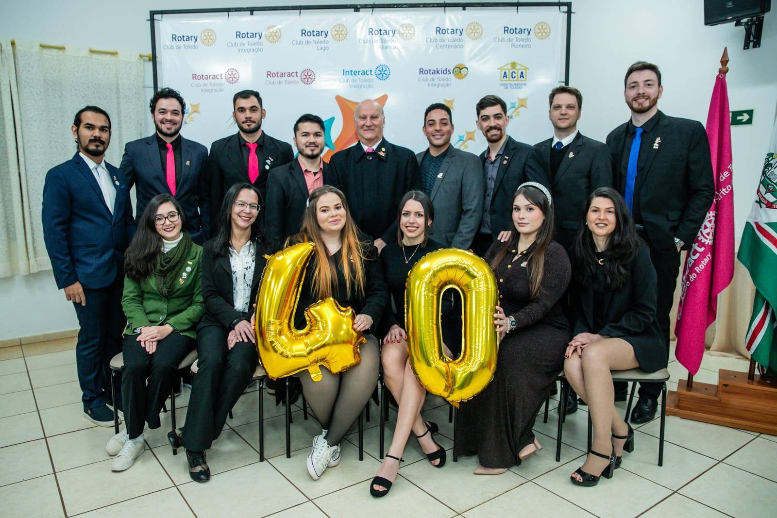 No último sábado (10), o Rotaract Club de Toledo celebrou o aniversário de 40 anos de fundação. O clube foi criado no dia 06 de agosto de 1984, pelos companheiros do Rotary Club de Toledo. O evento realizado na Casa da Amizade contou com aproximadamente 90 pessoas, entre eles atuais e ex-rotaractianos, companheiros da Família Rotária, autoridades locais, amigos e familiares. A cerimônia trouxe momentos emocionantes, como um vídeo de resgate a história do clube com a participação de ex rotaractianos; homenagem in memorian ao sócio-fundador Ayrton Saboya Pitta e homenagem ao companheiro sócio-fundador Danilo Matiello, realizadas pela companheira Marielyn Moesch; posse da nova associada Glécia Sokolek; discurso da Presidente Laura Pinheiro Huppes; também teve muito companheirismo durante o jantar e um delicioso bolo de aniversário.