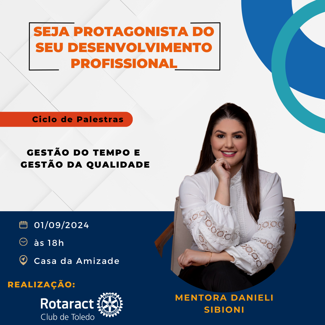 O Rotaract Club Toledo convida você para o segundo encontro da nossa série de treinamentos voltados ao desenvolvimento pessoal e profissional. Desta vez, o foco será em Gestão do Tempo e Gestão da Qualidade.