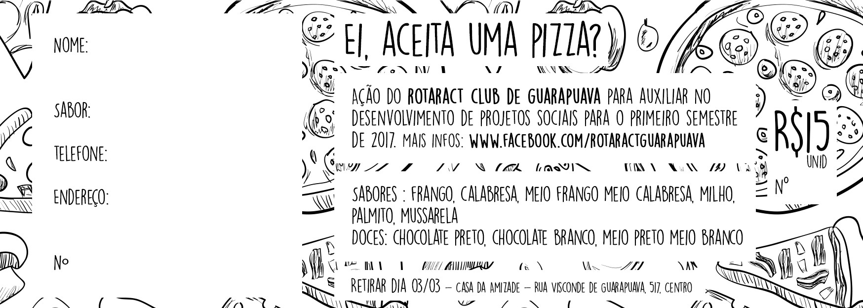 O Rotaract Club de Guarapuava está vendendo pizzas para arrecadar dinheiro para seus projetos nesse mês. E aí, vai uma pizza?